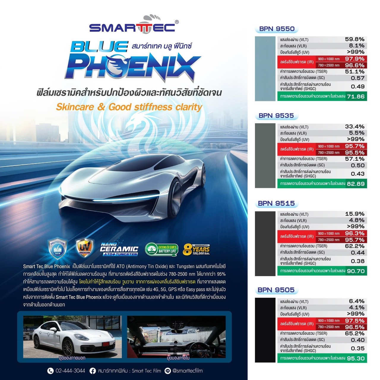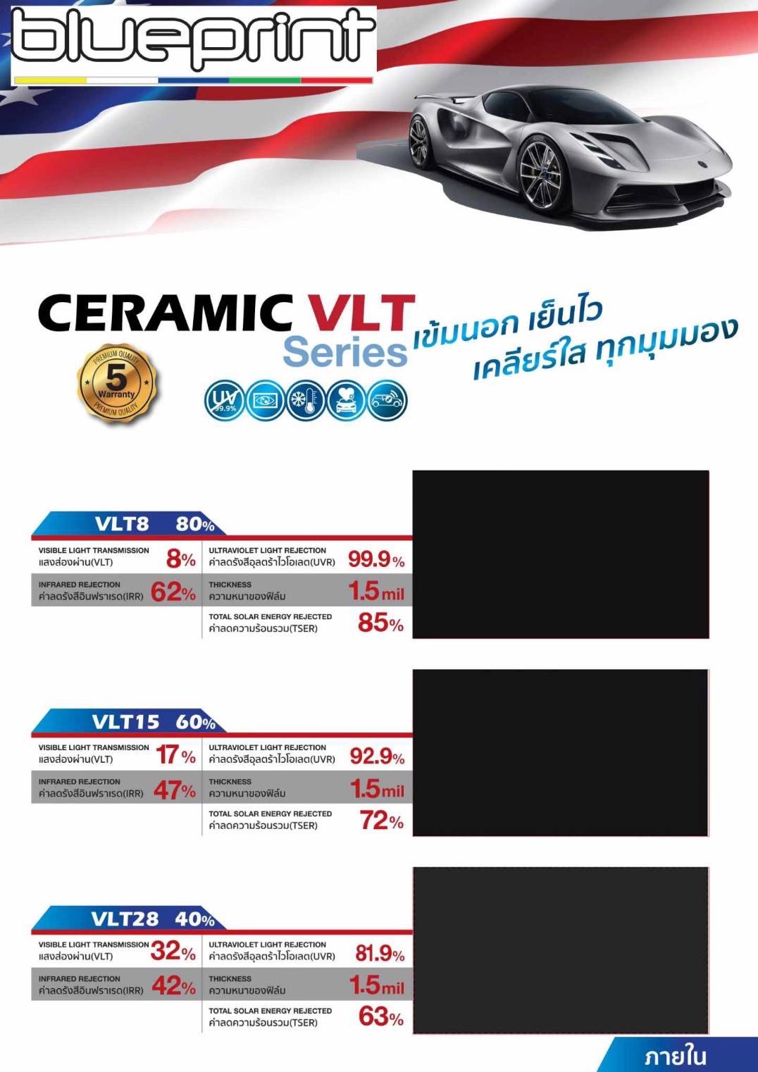 ฟิล์มเซรามิคแท้ มีให้เลือกหลายเกรด ความเข้ม ของฟิล์ม